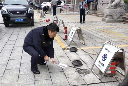 为改善市容环境,还路于民,直属五大队组织开展了商铺私设路障专项拆除行动,并依法下达责令整改通知,要求武通商务宾馆、世纪豪庭酒店、交通银行3家违规单位限期自行拆除私设路障。1月22日下午,直属五大队执法人员对龙洲南路益阳大道部分商铺私设路障进行了依法拆除,同时对相关人员进行了教育,普及相关法律法规,以执法促普法。拆除行动进行了2个多小时,共计拆除车辆停泊后尾栏杆6处,压盲道的路障、水泥桩40余个。剩余2个违章私设的水泥墩,商铺业主表示近2日将拆除。