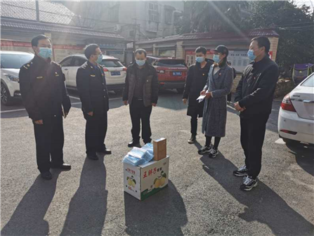 2月8日,党组副书记、副局长项彦带队慰问鹅羊池社区一线防控志愿者,为他们送去口罩 、体温监测仪等紧缺物资和水果等慰问品。