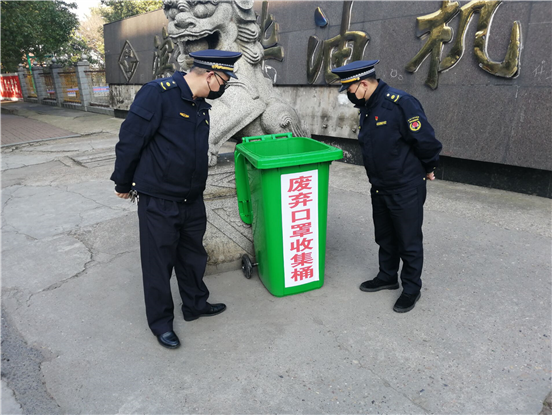 在中心城区大海棠、江金、乾元宫等10个社区,都留下了该大队队员的足迹。大队领导带队到各社区上门对接疫情防控工作,发放规范餐厨垃圾、生活垃圾、废弃口罩处置的温馨提示800余份,引导市民配合阻断疫情传播渠道,科学防疫。巡查城区废弃口罩收集点(桶)近200处(个),较好地落实了疫情防控职责。