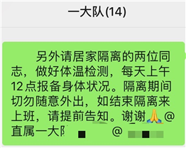 二是主动查验,落实预防工作。大队内部做了细致排查,武汉返乡接触史或感冒症状的人员按要求居家隔离,每天测量体温,上报身体状况。在岗队员上班前逐一测量体温,规范佩戴口罩,巡查归队先洗手。分批次、轮流就餐,通过微信召开队务会议,转发防疫知识,尽力减少人员聚集。下班后对办公场所统一消毒,内部防控项项过细,为夺取疫情防控阻击战的最后胜利作好了准备。