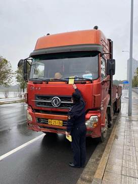 1月中旬,大队发现资江风貌带南岸西流湾大桥至龙洲大桥之间停放着数十辆大型旧货车。该路段树立有醒目的小车停车位标志牌,但是道路依然被大型货车占用。执法人员多次向占用小车位的大货车发放违停温馨告知单,督促其尽快驶离。