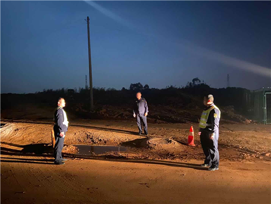 4月8日,赫山区渣土管理大队队员夜查衡龙新区宁韶高速公路修建工程衡龙新区段渣土运输情况。
