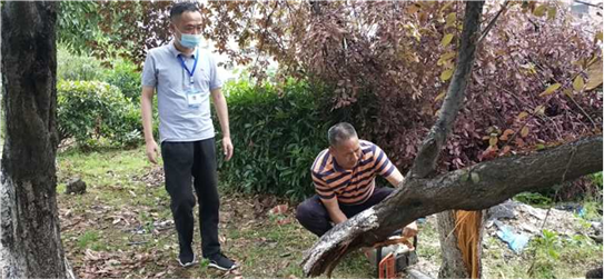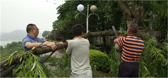 5月4日晚至5日晨,我市遭受强对流天气袭击,持续的强降雨造成资江风貌带北岸会龙山大桥至大码头段6株行道树被损毁,部分树木折断倒塌在风貌带北岸游路、车道上,严重影响行人、车辆通行安全。市大桥服务中心迅速启动特殊天气应急预案,中心主任刘晓佳带领干职工赶到现场开展清理。大家将已折断的树木统一搬移清运,对2株底部已严重折损、倾斜的树木使用电锯移除清理。经过几个小时紧张奋战,资江风貌带北岸被损树木全部清理运输完毕。