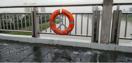 橙色的救生圈挂在桥梁护栏上,提醒大家远离危险水域。一个救生圈可承受 2 个成人浮力,万一有人落水,施救者可第一时间取下抛掷施救,也可携带救生圈下水救援。