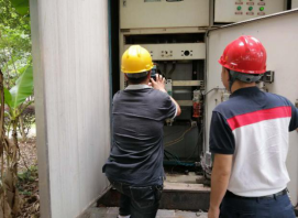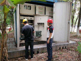 市路灯灯饰服务中心副主任谌攀带队检修变压器