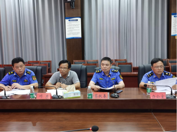 局二级调研员蔡跃春主持会议。局机关各科室、各直属大队、资江风貌带执法大队、城管指挥中心主要负责人参加会议。