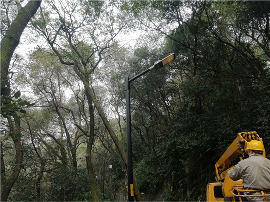 会龙山公园原有庭院路灯170余基,因公园常年阴暗,空气潮湿,灯具腐蚀破损严重,树木繁茂,很多路灯经常因灯泡烧坏不亮,并且灯罩为有机玻璃,破损多,时间长了透光性也差,灯支臂固定镙栓锈蚀严重,存在一定的安全隐患。
