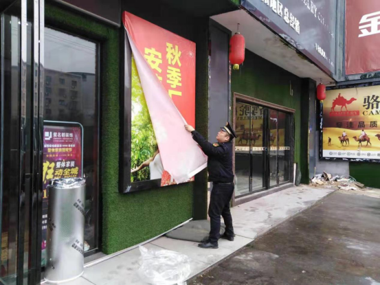 截至目前,执法中队共清理橱窗广告150余处,拆除违规店牌21家,使沿街门店恢复了明亮干净。下一步,直属五大队将进一步开展店外广告专项整治活动,加大巡查力度,严厉查处各类违法违规设置广告和店外随意粘贴宣传广告的行为,对辖区一店多牌、门店玻璃小广告,特别是药店促销广告进行全面清理,确保城市空间清爽整洁。在此,城管部门呼吁广大市民爱护城市环境卫生,遵守有关规定,不乱张贴、喷涂非法广告,共同打击城市“牛皮癣”,维护整洁优美的市容环境。