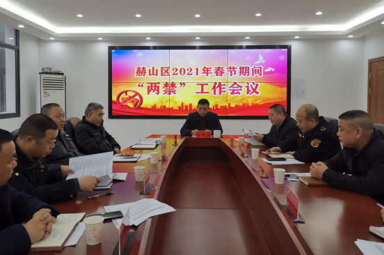 2月8日下午,赫山区城市管理委员会召开2021年春节“两禁”工作会议,全面部署春节前后城区禁止生产、销售、储存、运输、燃放烟花爆竹的整治工作。“两禁”领导小组各成员单位相关负责人参加了会议。