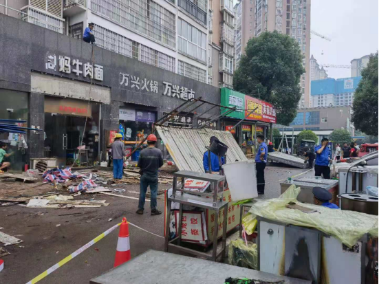 今年4月以来,城管部门接到居民反映,学府花园6栋1楼的部分门面经营业主在店外违规搭建固定式遮阳棚,影响行人和车辆的通行,严重侵犯了周边居民的公共利益。为保护小区居民的合法权益,益阳市城管局执法积极部署,制定拆除行动工作方案,确保拆除工作有序开展。一方面是调查摸底,教育劝导。在调查的基础上,执法人员挨家挨户上门和门店老板面对面沟通做工作,耐心的讲解相关法律法规,督促经营业主自行拆除,另一方面是对拒不配合整改的违章建筑门店送达限期拆除通知,要求门店在规定期限内自行拆除。