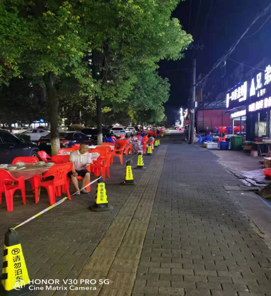 行动中,对不符合要求的流动夜市摊贩进行取缔;对团圆南路夜市漫酒集中区,采取餐饮店主代表自治与执法监督相结合,规定经营的时间、区域,按照无污水乱倒、无垃圾乱扔、无油烟乱排、无桌椅乱摆、无车辆乱停、无噪声扰民的“六无”标准进行规范管理。经整治,现每个餐饮店都有文明劝导员劝导客人文明就餐,桌椅摆放整齐,垃圾及时清扫袋装,餐饮油烟达标排放,店前车辆停靠有序,夜市集中街区成了一道靓丽的风景线。