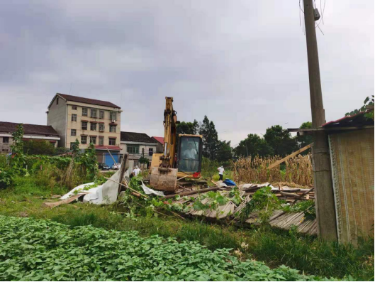 8月11日,资阳区城管执法局会同长春经开区、白马山社区,出动挖机一台,依法拆除白马山社区金盆山组两户王姓违建户偷建抢建的新发违建2处,面积280平方米。