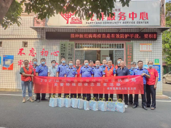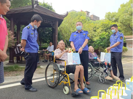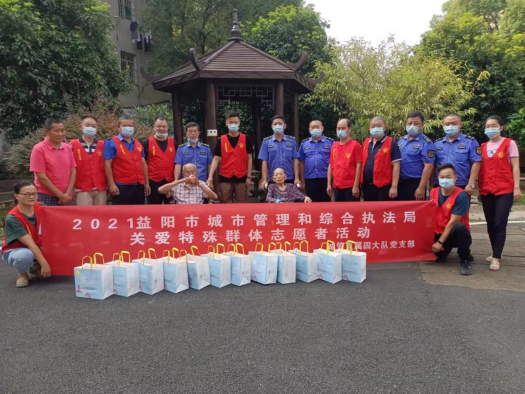 9月16日上午,益阳市城市综合管理和执法局直属四大队志愿者先后来到赫山区老年休养院、梓山社区看望慰问老人、困难群众等特殊群体,送去月饼和中秋祝福。