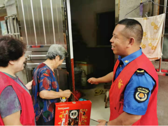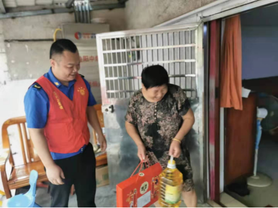 根据市局平安益起来志愿服务活动安排部署,2021年9月18日,市城管直属五大队党支部组织党员志愿者走进江金社区,开展关爱社区特殊群体志愿服务活动,对辖区特殊家庭进行走访慰问,为特殊家庭送上节日慰问物质,并送上节日的祝福。