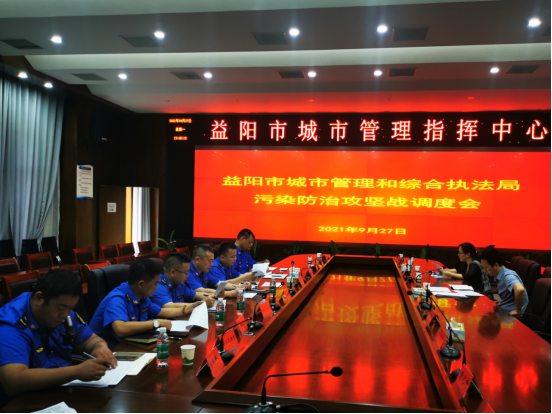 9月27日下午,在市城市管理指挥中心二楼会议室。市城管执法局党组成员、副局长王锟主持召开污染防治攻坚战有关第10次工作会。市城管执法局相关科室、局属单位和三区(赫山、资阳、高新)城管执法局负责同志参加了会议。