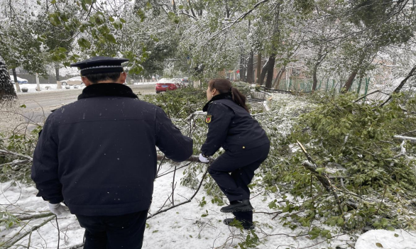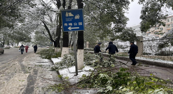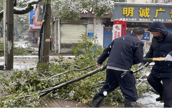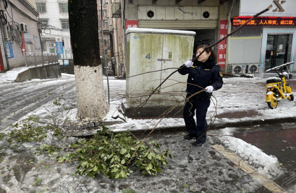 2月7日清晨,市城管执法局直属七大队抗冰抢险应急处置队收到益阳市城区保畅指挥部通知,秀峰路多处树枝被积雪压断,折落在车行道和人行道上,导致车辆和行人无法通行,急需处置。