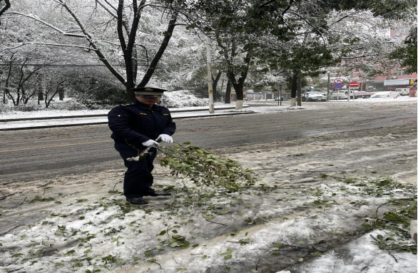 行动中,大家脸都冻得通红,手套多次拧干重复使用,鞋袜全湿透,依然继续步行前进,直到把所有树枝彻底理理干净。过往司机和沿街群众纷纷竖起大拇指,称大家是人民的好公仆、勤务员!