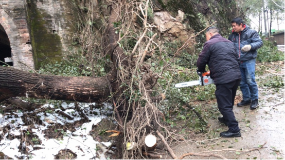 “桃花仑东路益阳师范路口倒了一棵大树、七里桥至赫山庙沿线倒了三棵树、秀峰公园东门倒伏树木堵住了入口......”2月7日凌晨,益阳下起了鹅毛大雪,市园林绿化公司应急抢险队陆续接到市长热线和城管指挥中心平台抢险电话。接到热线后,市园林绿化公司立即出动6支应急抢险队伍,共计36人,在桃花仑路、康复路、金山路、秀峰路等地清理倒伏树木及枯枝。