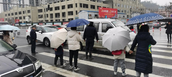 市城管执法局直属五大队抽调20余名城市管理经验丰富的执法队员,因地制宜,在辖区各学校设立“城管护学岗”,为未带伞的孩子撑起一把雨伞、给粗心的孩子系好鞋带、护送没有家长陪同的孩子过马路,用实际行动给广大师生、家长们开辟出一条平安出行路。同时,采取定点管理和机动巡查相结合的方式,严管流动摊点、出店经营、非机动车乱停乱放、散发小广告等违规行为,保障校园周边市容环境秩序。