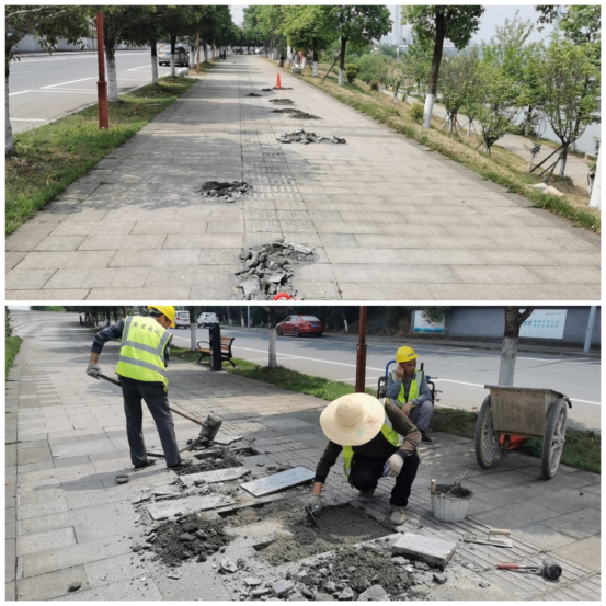 近日,有热心市民反映,资阳区资江风貌带沿线有不少人行道地砖松动或损坏,希望尽快处理。市城管执法局资江风貌带执法大队立即组织人员实地核查处理。