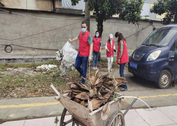 在大海塘社区内原武警黄金部队家属区,环卫中心的干职工分成2个小组开展活动,一组清理环境卫生,清扫落叶,捡拾烟蒂槟榔渣等垃圾,共清运垃圾2车;另一组开展生活垃圾分类宣传,给小区居民发放生活垃圾分类宣传单和宣传袋,讲解生活垃圾分类知识,提高居民对生活垃圾分类工作的知晓率。此次活动,共发放宣传单200多份,宣传袋200多个。