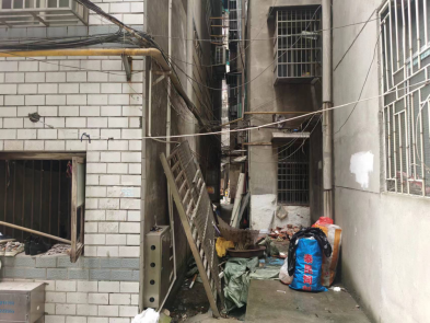 拆除桂花苑小区内堵塞楼栋间行人通道的钢架棚现场