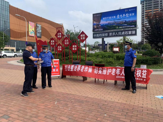按照省住建厅要求,5月24日,益阳市城市管理和综合执法局在万达广场开展养老诈骗专项整治宣传活动。活动现场,执法人员向市民发送宣传手册800余份,同时发放优发营商环境监督联系卡片1000余张。同时,利用中心城区大型电子显示屏滚动播放防养老诈骗宣传700余次。