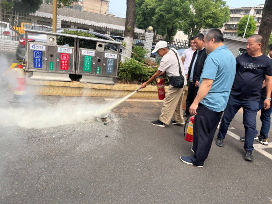 培训会上,参会人员集中观看消防短片以及PPT,学习如何排查安全隐患,如何正确报火警,如何扑救初期火灾,如何正确逃生等知识。重点了解如何对办公区域、路灯监控室、高空车施工现场车辆、路灯箱变等进行检查。培训结束后,市路灯服务中心消防专干屈先刚在室外进行了灭火实操演练,详细介绍了常规消防设施的使用,并进行现场演示。