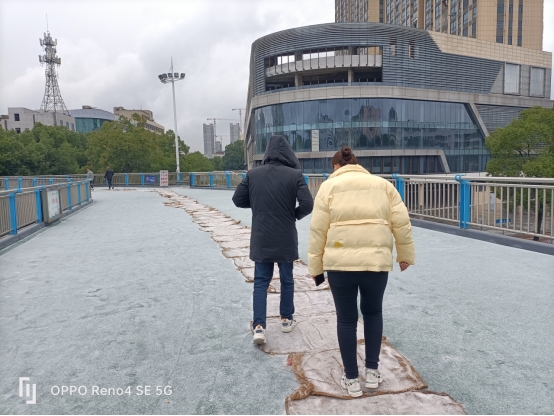 11月30日,桥南人行天桥铺设防滑麻袋