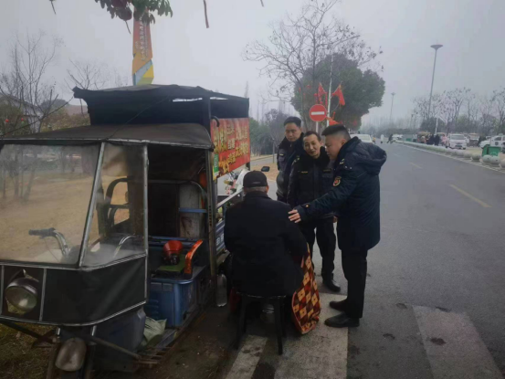 “大爷,您这车停在这路口做生意不安全啊!我们帮您另选个地方如何?”