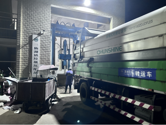 转运车在南县三仙湖垃圾压缩站装运垃圾