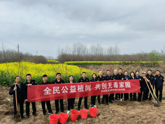 近日,南县城管执法局组织机关干部职工到三仙湖水库河洲开展义务植树活动,掀起春季植树热潮,树立“植绿、爱绿、护绿”的生态文明新风尚。