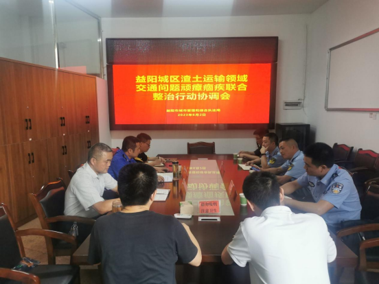 为优化营商环境,打赢蓝天保卫战,6月2日下午,益阳城区渣土运输领域交通问题顽瘴痼疾联合整治协调会召开,益阳市交警支队、益阳市交通行政执法支队,益阳市城管执法局直属二大队、设施科相关负责人参会。
