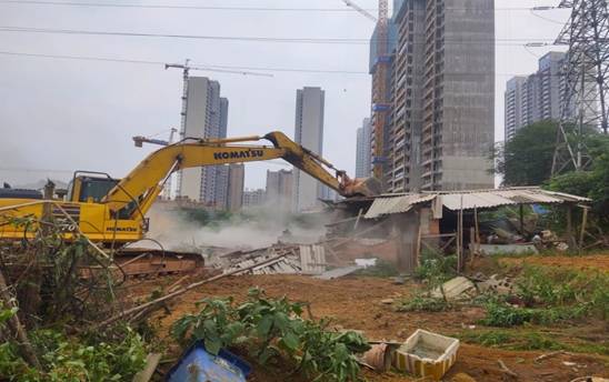 据了解,益阳大道东片区城市之光项目是我市重点建设工程项目。自2021年该宗地块完成征地拆迁以来,周边村民就陆续在项目用地范围内乱搭乱建棚屋、抢栽抢种各类苗木等,对项目建设的推进造成了严重影响。在行动之前,相关部门工作人员已提前与当事人进行了思想沟通,开展法规宣传,依法下达了相关执法文书。