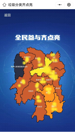 本次活动中,市垃分办统一调度,高效推动,积极推动分类习惯养成。各县市区垃分办组织人员在商场、公园、广场、夜市等人流量密集的场地集中开展“垃圾分类新时尚,全民参与齐点亮”宣传活动;市直部门通过分类打卡推动公共机构垃圾精准分类;教育部门将垃圾分类纳入学生暑期实践活动;各街道、社区广泛动员发动,坚持打卡答题,贡献能量,经过72天坚持不懈的努力,8月4日,益阳亮度达到100%,成功点亮。至8月5日活动结束,我市取得全省第一的好名次。