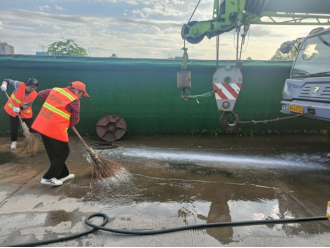 为迅速改变此区域卫生面貌,赫山环卫中心组织车辆、人员,抽调二台洒水车进行整治,工人用扫帚、铲子清理绿苔、墙角杂草,转运建筑垃圾。从上午10点一直工作到下午4点,共冲水10车,清除垃圾十余车,道路及沿线彻底洗出了本色,周边环境面貌焕然一新。