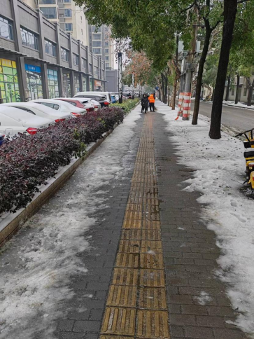 2月4日上午,资阳区环境卫生服务中心浴“雪”而行,踏寒而动,按照铲雪除冰作业方案及应急预案,迅速组织各部门人员及铲雪除冰设备全部到岗到位,以“先融雪后铲雪、先重点后全面”的原则,采取“机械化清雪为主,人工作业清扫为辅”的方式,以盲道为中心,保证人行道有1.5米宽的顺畅路径,车行道以机械除冰雪为主,为居民、车辆安全出行开辟出一条条“安全通道”。