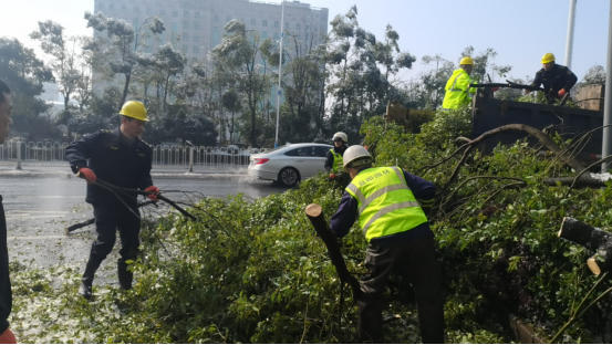 “全身湿透也没关系,抓紧搞完再说。”倪谷良边说边使劲往路边拖送断枝,这是一位只有两年就退休的老城管人。这样的状况、这样的工作,不管是冰雪灾害还是暴雨抢险,不管是耳脸冻伤还是衣鞋湿透,他的城管人生涯中已经历不计其数。尽管如此,他初心依旧、斗志不减、奋勇向前。这也是所有城管人工作的一个缩影。他们不惧冰雪、无惧严寒、不分昼夜、始终战斗在抗击冰雪、清理断枝第一线。