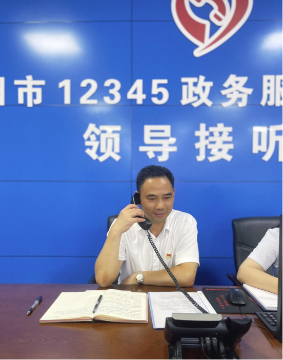 7月5日上午,益阳市城管执法局党组书记、局长黄建华到益阳市12345政务服务便民热线中心接听群众来电,倾听群众声音,推动解决群众“急难愁盼”。