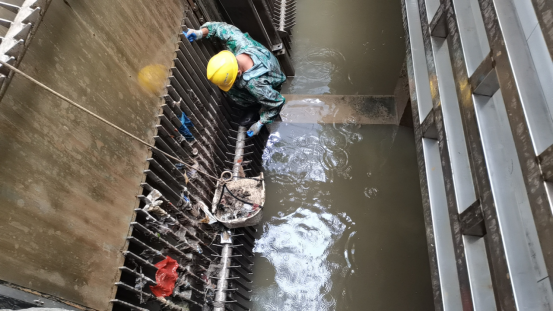 为确保泵站机组的正常运行,泵站拦污栅在排渍过程中会将水流中的垃圾拦截下来,但时有木方、模板、彩条布等建筑垃圾将烂污机卡死,只能通过人工清理。作为秀峰湖拦污机的值班员,市城防处90后党员欧云蔚,总是会主动下到散发着恶臭的出水口井里,不顾脏不顾累,争分夺秒地徒手清理拦污栅上的垃圾。