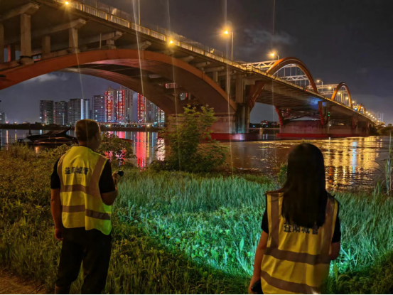 市大桥中心的袁俏是两个孩子的妈妈,同时也是一名军嫂,防汛期间家里孩子因肺炎高烧不退,她不放心防汛工作,将孩子送往医院后立即回到防汛值守一线。作为应急巡查小组带队人员,她打着雨伞、拿着手电筒,一处处排查城市桥梁安全、桥面排水情况,一处处劝导桥下临水部位涉险垂钓人员。