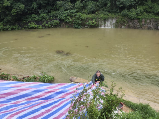 7月1日下午暴雨如注,梓山村水库溢洪道消力池左侧挡土墙突发垮塌险情,梓山村水库管理处应急抢险先锋队迅速采用避水截流的方式进行应急处置。作为在水库管理一线工作了36年的老党员,李晓军率先跳入远超汛限水位、水流湍急的消力池中,与抢修队员合力用彩条布覆盖住垮塌的1000余平方米挡土墙,避免雨水继续冲刷,直至天黑终于将险情控制住。