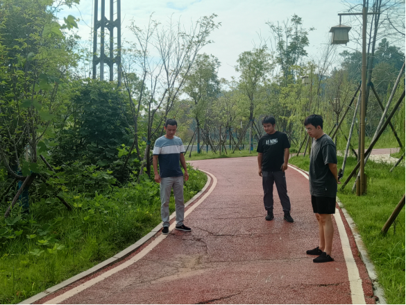 本次检查涵盖了扬帆路堤防段的内外护坡、堤顶、堤腰、堤脚等关键部位。检查人员依据《堤防运行管理办法》,对扬帆路堤防段重点检查河堤是否存在渗漏、裂缝、护坡塌陷、堤顶坑洼等隐患,确保堤防工程的安全性和可靠性。工作人员通过步巡查看,发现扬帆路风貌带内部道路出现坑洼1处,并及时反馈至施工方中交二航局进一步处置。