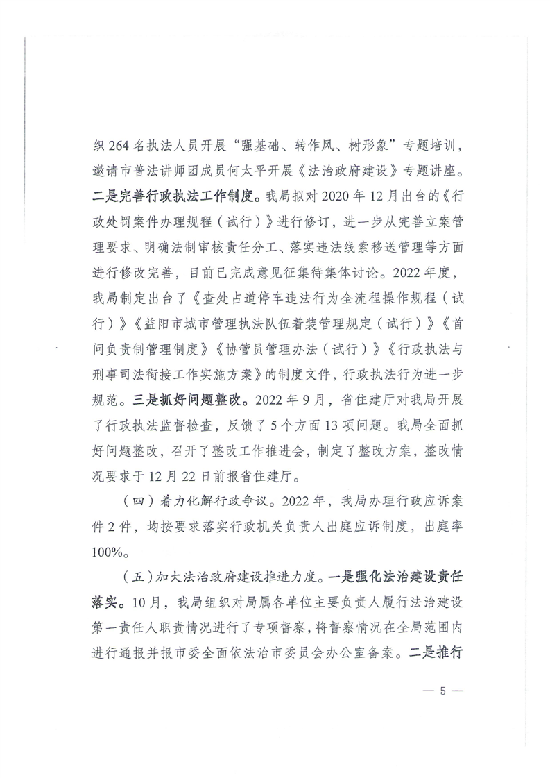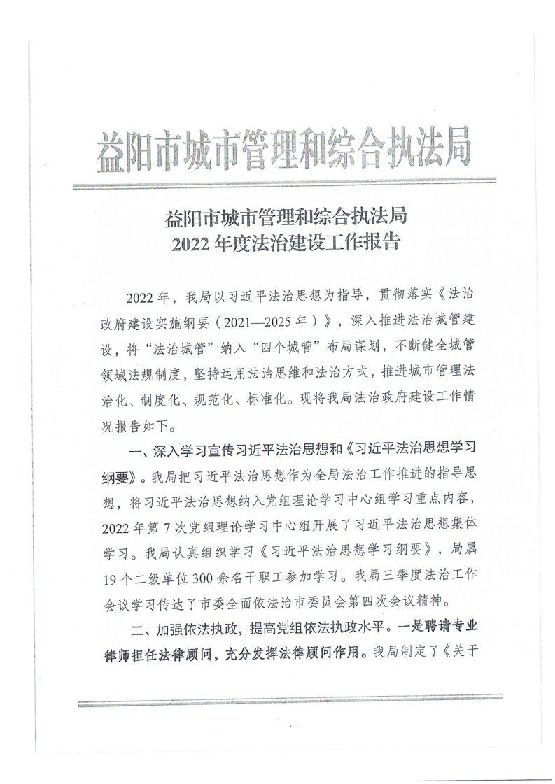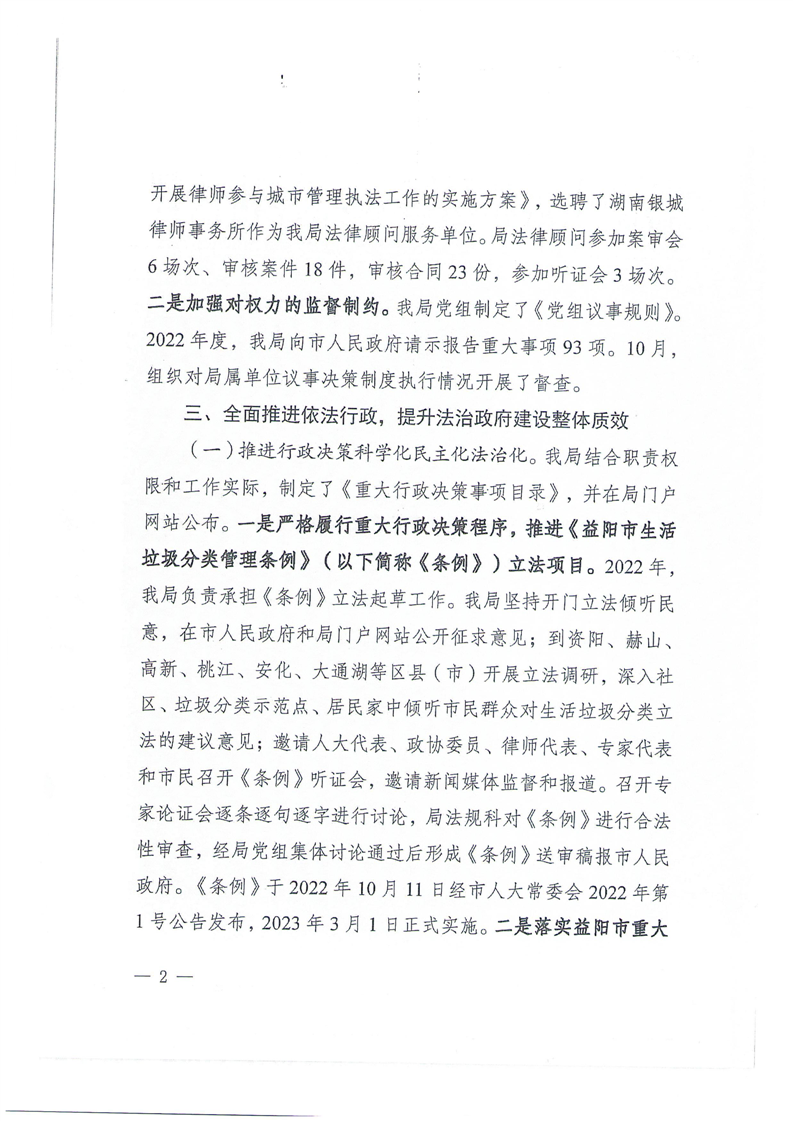 益阳市城市管理综合执法局2023年度法制建设工作报告