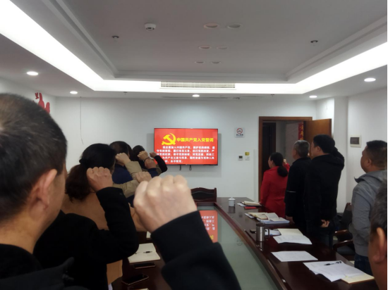 组织生活会包括七项议程,首先全体党员重温入党誓词,接着支部书记吴立强通报了组织生活会准备情况,党务专干张德清领学了党章,会议有序开展。