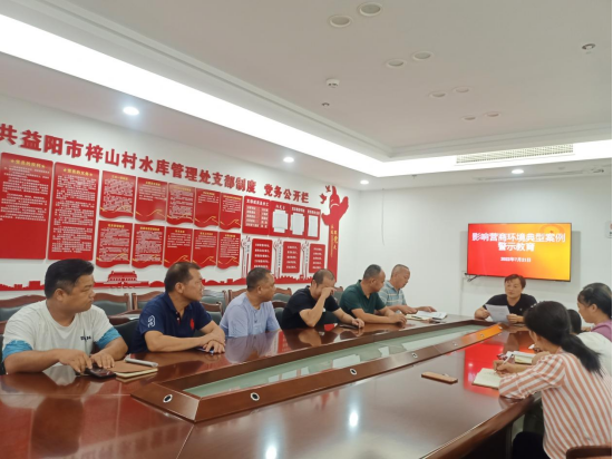 开展警示教育。梓山村水库管理处党支部加强党建引领,党性学习与警示教育相结合,深入推进“清廉单元”建设。7月25日,组织干职工集中观看《榜样的力量》,再次学习《益阳市城市管理和综合执法局工作人员“十严禁”》,传达《关于1起“微腐败”影响营商环境典型案例的通报》,开展警示教育,教育引导党员干部职工引以为戒、自警自省,珍惜自己的工作岗位,树牢服务意识、法纪意识、廉洁意识。