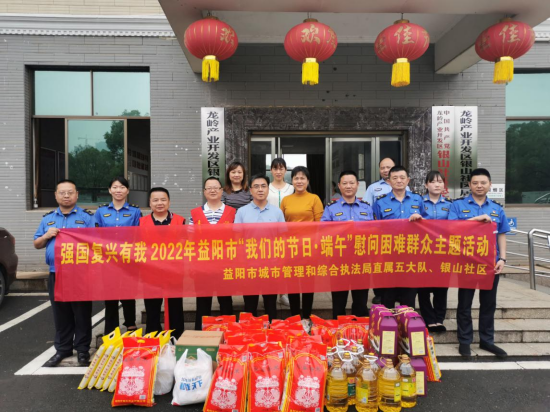 端午近,粽香飘,为了让社区群众过上一个欢乐祥和的端午节,6月2日上午,市城管执法局组织直属二大队、直属五大队、直属六大队支部党员干部到龙岭工业集中区银山社区走访慰问群众,开展“强国复兴有我2022年我们的节日•端午慰问困难群众”主题党日活动。