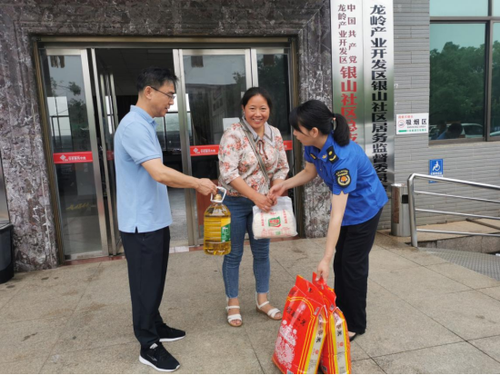 慰问活动中,市城管执法局为社区14户群众送去米、食用油、爱心粽子等节日慰问品,并致以节日的问候与祝福,详细了解他们近期身体状况和家庭生活情况,鼓励他们积极面对生活,叮嘱他们如果有困难,及时联系社区。