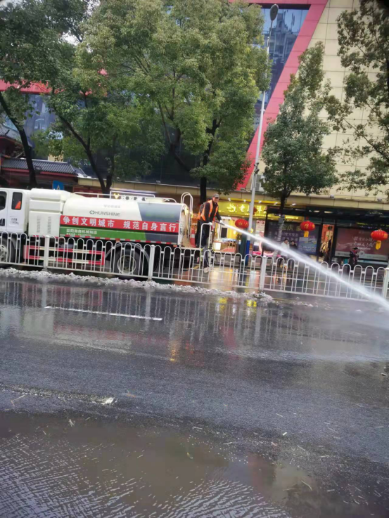 开展大清洗行动。持续实施“机械冲洗+人工跟进”的作业模式,用洒水车高压水枪对城区主次干道路侧石、人行道、十字路口等区域的泥沙、卫生死角进行反复冲洗、洗刷,彻底清除雪后路面积垢。同时,由人工对下水道收水口周边的树枝杂物、垃圾进行清理,防止阻塞造成积水,切实提升雪后道路环境,方便群众出行。
