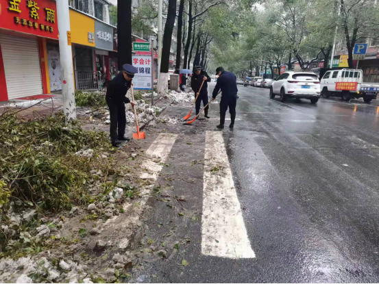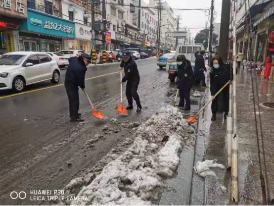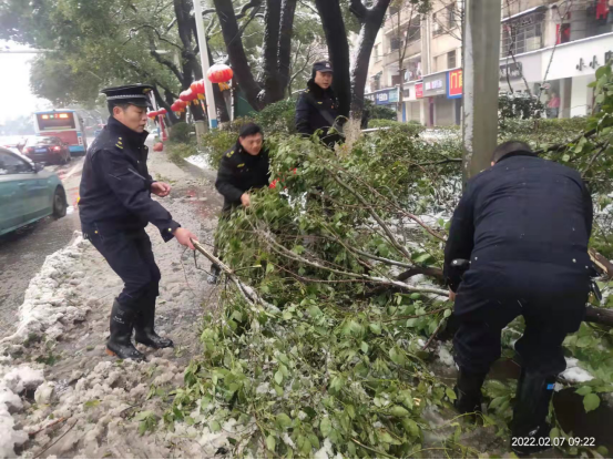 虎年的第一个工作日,银城益阳迎来了节后的第一场雪。直属四大队党员干部还未来得及欣赏这银装素裹的美景,就纷纷投入到了紧张的应急排险工作中。7日清晨起,班子成员带领队员们忙碌在各个主次干道、车站、市场、公交车站台等位置,清理断树残枝,铲雪除冰,方便车辆和行人出行,保安全保畅通。